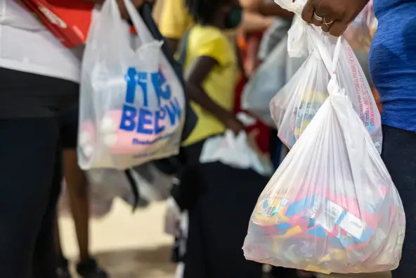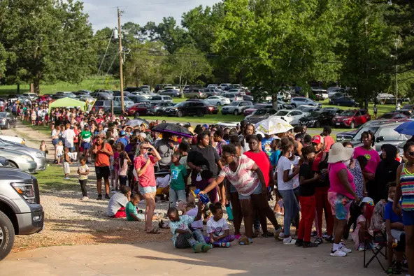 More than a thousand people showed up for the 8th annual Back to School Giveaway event hosted by Sheila Hill and Sharon Barnet, affectionately called the “Twin Angels” by the Athens community, and Leta Davis on Sunday, July 24, 2022 in Athens. The giveaway included free school supplies, uniforms, shoes and hygiene products, all donated from nearby counties and states, and as far as California. This year’s event was the largest yet. “It’s overwhelming,” Sheila Hill said. “The kids are so happy, smiling at having good shoes,” continued her twin sister Sharon Barnet, “It feels good.”